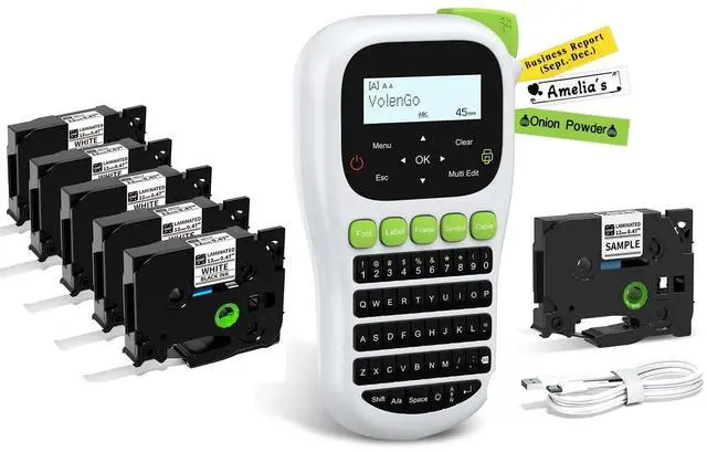 You will get a thermal transfer ez label printer for kitchen home office, including tz tape Laminated 12mm 0.47 white. Get creative with multiple functions and personalize your labels with various fonts, symbols, and designs. The lightweight labeler with a backlight LCD will save your label designs for future use, and you'll enjoy the convenience of dual power supply modes with H1100 labeling maker. This versatile lamination machine is a must-have for organizing and personalizing your belongings. Our TZe231 12mm ( 0.47 inch) laminated white tape is compatible with Brother Ptouch label tape.