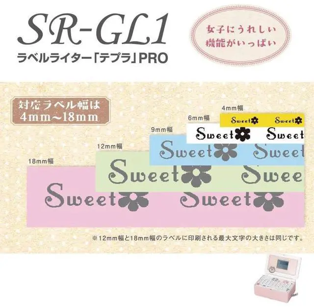 Creates a girly "Tepra" with a sense of personality. The girly "tepra" makes the label Morimono favorite. 8 types of cute fonts8 kinds of cute fonts perfect for women. (Emoticon and lots of frames) The design of the label is a new level. Adopts many motifs that are popular among women.