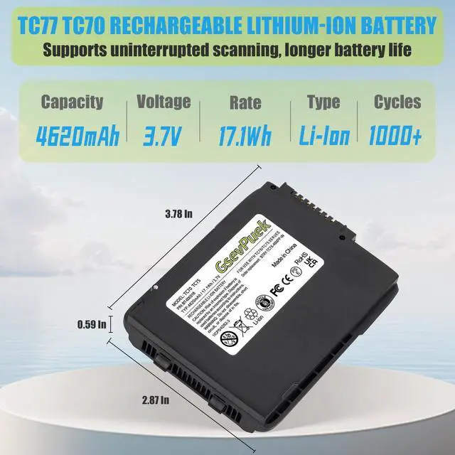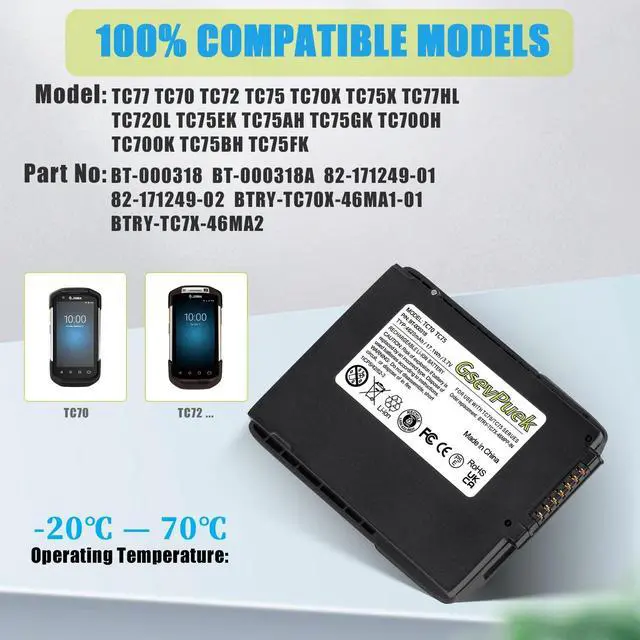 Net weight: 126g1pcs, ^^ for zebra tc75x Scanner BatteryBattery built-in microchip, battery built-in overcharge, overdischarge, overvoltage, overcurrent and overheat protection to ensure your product is safer to use. your best scanner replacement battery. ^^ for Zebra TC70 BatteryThis replacement battery is easy to install and fits perfectly, lithium-ion battery technology provides extended runtime with no memory effect. ^^ TC72 Scanner Battery12 months warranty guarantee, if you are not sure this battery is what you need, you can send us the picture, we will reply to you, let customer satisfaction is our purpose.