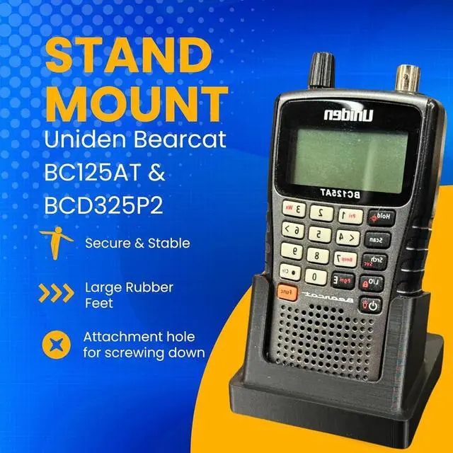 Custom Fit for Bearcat BCD325P2 & BC125AT Designed specifically for these models to ensure a snug, secure fit for your handheld police scanners. ^^ 10 Tilt for Enhanced Display Visibility Slight backward tilt provides optimal viewing angles for easy monitoring of scanner data on your desk or table. ^^ Includes #6 x 1/2" Screw for Optional Stability Secure your stand firmly to your workspace for added stability; avoid over-tightening to protect the unit. ^^ Durable Construction for Long-Lasting Use Manufactured from premium materials to provide lasting durability and reliable protection for your scanner. ^^ Easy Insertion and Removal Smooth design allows quick placement and removal without friction or hassle.