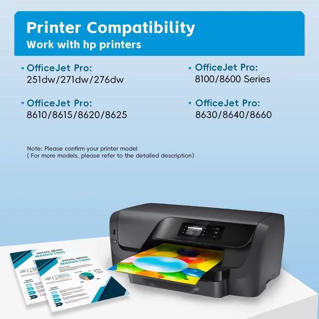 ^^ Reliable Printing Quality: Our all 951 XL compatible ink cartridges combo pack for hp 951 ink cartridges combo pack are tested to the highest and strictest quality. And all are equipped with the latest intelligent chips and high-quality ink to bring you vibrant colors & clear black and to ensure high compatibility with printers, recognized easily and used without any issues. ^^ 951XL Combo Pack compatible replacement for 950 951XL ink cartridges color for OfficeJet Pro 8600 series printers. Please confirm your printer use the 951 or 951xl ink cartridges before placeing order.