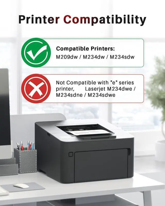 ^^ Warm Tip: 134A W1340A Toner Cartridges Not compatible with e series printer, Such as M234dwe M234sdne M234sdwe printer. When installing the cartridge, you see the computer Cartridge Low message, this will not affect the printing, please skip and continue printing.