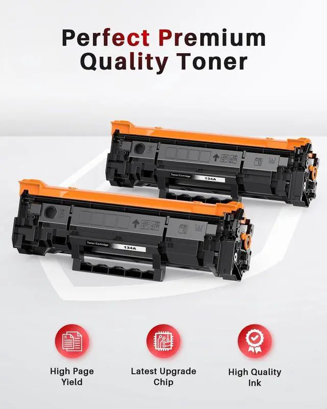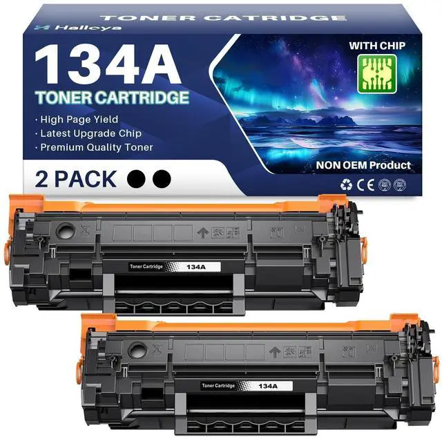 Package Included: 2 x 134A Black Toner Cartridge (with Chip), 1 x User Instruction Card.