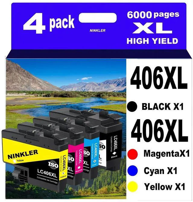 Page Yield: UP to 6, 000 pages per LC406XL LC 406XL Black Ink Cartridge (LC406XLBK) and 5, 000 pages for LC406XL LC 406 XL Color Ink Cartridge LC406XLC LC406XLM LC406XLY High Yield Ink Cartridge (A4 Letter, at 5% Coverage) ^^