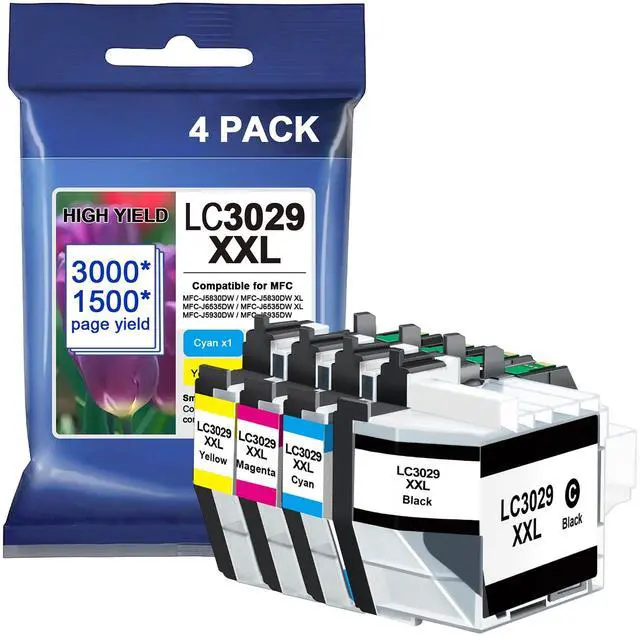 What's in the box: LC3029 XXL 4P super high yield ink replacement for Brother LC3029 Ink Cartridges (Includes 1 * lc3029bk, 1 * lc3029c, 1 * lc3029y, 1 * lc3029m, 1 * user guide) ^^