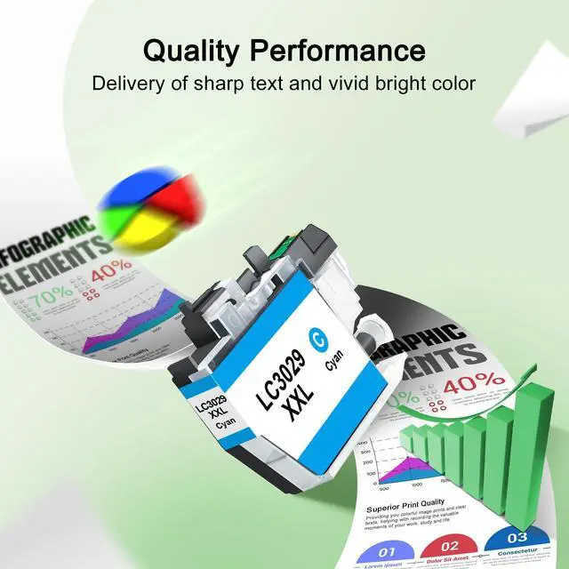 Premium Printing: These LC3029 XXL ink qualified with ISO9001 and ISO14001 Factory Standards provide you with fluent printing results ^^ The LC3029XXL ink cartridge offers superb print quality. With sharp details, vibrant colors, and clear texts, it ensures every printout is a masterpiece, meeting all your high-quality printing demands
