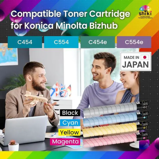 Color: Yellow / Compatible Toner Cartridge Replacement for Konica Minolta bizhub C454 C554 C454e C554e TN512Y A33K232 (Yellow, 26000 Pages) ^^ Developed using Japanese technologies, shiki yields outstanding printing quality that can vividly express the various scenes of shiki, or four seasons in Japanese. ^^ Having passed all of our tests, shiki has the quality that is equally high as OEM products in page yield and other quality indexes. ^^ To enjoy the highest printing quality, we recommend using the shiki brand for all four colors. ^^ Excellent Quality Throughout Four Seasons ^^ SHIKI contains high-grade toner that has passed the most rigorous environmental testing and maintains a stable and excellent quality throughout four seasons. *shiki () in Japanese means four seasons.