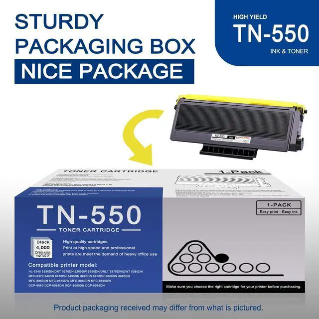 ^^ Page Yield: 4, 000 pages per TN550 Black Toner Cartridge at 5% coverage (Letter/A4). ^^ Compatible for