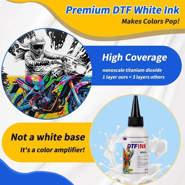 The impurity free formula resists clumping, forming a smooth film after baking. DTF ink for epson 8550 suitable for various fabrics like cotton, polyester, denim, nylon, leather, and blendsideal for printing on tees, bags, hats, and more ^^ Wide Printer CompatibilityThis DTF ink no sediment for Epson is compatible with multiple DTF printers, including the ET-8550, ET-8500, ET-2400, ET-2800 series, ET-3850, ET-4800 series, ET-15000, R1390, R1800 series, R2400, R2880, R3000, R3880, F2000 series, DX5, DX7, and many more ^^ Kit Contents250ml each of Cyan, Magenta, Yellow, Black, plus 500ml White this color DTF ink set handles every project ^^ Reliable Customer SupportEnjoy 12-month service for this DTF heat transfer ink.