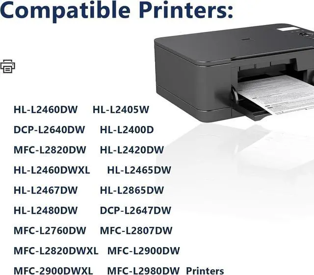 Extensive Compatibility: Our TN830XL toner cartridges work well with a wide range of Brother printers, including DCP-L2640DW, DCP-L2647DW, HL-L2460DW, HL-L2400D, HL-L2405W, HL-L2420DW, HL-L2460DWXL, HL-L2465DW, HL-L2467DW, HL-L2480DW, HL-L2865DW, MFC-L2760DW, MFC-L2807DW, MFC-L2820DW, MFC-L2820DWXL, MFC-L2900DW, MFC-L2900DWXL, MFC-L2980DW.