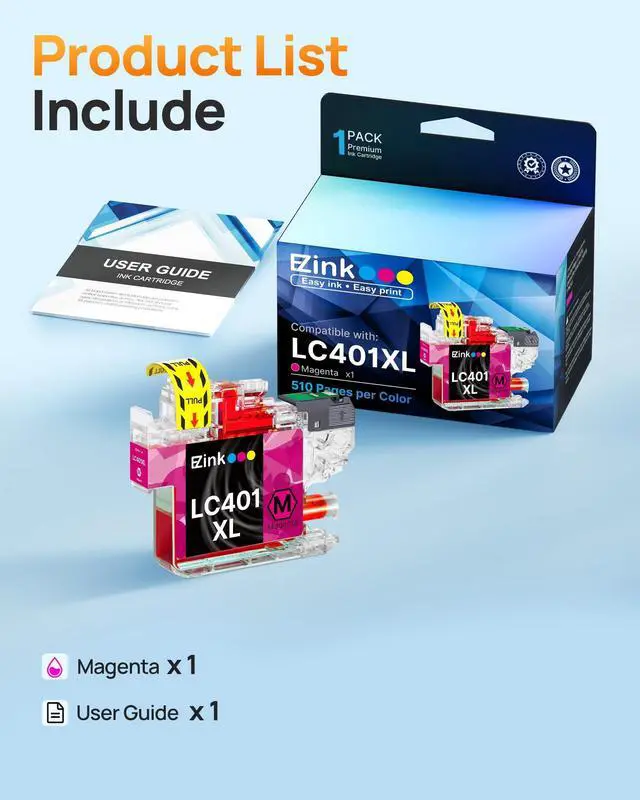 Package Contents: 1 x User Guide and 1 x Magenta LC401XL ink cartridges ^^