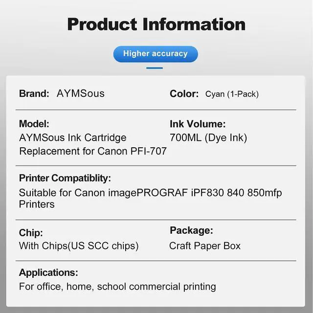 You Will Receive: 1-Pack Cyan Compatible Pigment Ink Cartridge replacement for Canon PFI-707 PFI-707C ^^