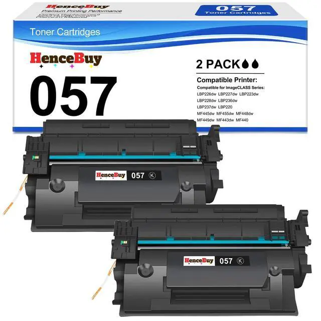 Product nameHenceBuy 057 toner cartridges compatible for Canon 057 CRG-057 057H high yield toner cartridge ^^ Compatible Printers057 toner Compatible for Canon imageCLASS MF455dw MF445dw MF451dw MF443dw MF448dw MF449dw, LBP226dw LBP227dw LBP223dw LBP228x LBP236dw LBP237dw, ImageCLASS MF440 LBP220 printer ^^ High Page YieldCanon 057 black toner cartridge is 3100 pages per Cartridge 057 Ink at 5% coverage cartridge 057 ink MF445dw toner ^^ Package Contents2 pack 057 toner Cartridge compatible for Canon 057 CRG-057 057H 057 Black Toner Cartridge High Capacity ^^ High-quality TonerHenceBuy 057 toner cartridge provide you with high-yield and high-quality printing experience. ^^ Print PerformanceHenceBuy 057 black toner cartridge prevents ink leaks and ensure compatibility, providing reliable aand consistent performance