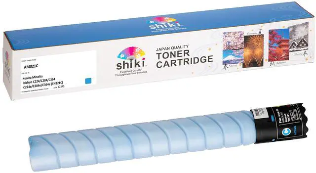 Color: Cyan / Compatible Toner Cartridge Replacement for Konica Minolta bizhub C224 C284 C364 C224e C284e C364e TN321C A33K430 (Cyan, 25000 Pages) ^^ Developed using Japanese technologies, shiki yields outstanding printing quality that can vividly express the various scenes of shiki, or four seasons in Japanese. ^^ Having passed all of our tests, shiki has the quality that is equally high as OEM products in page yield and other quality indexes. ^^ To enjoy the highest printing quality, we recommend using the shiki brand for all four colors. ^^ Excellent Quality Throughout Four Seasons ^^ SHIKI contains high-grade toner that has passed the most rigorous environmental testing and maintains a stable and excellent quality throughout four seasons. *shiki () in Japanese means four seasons.