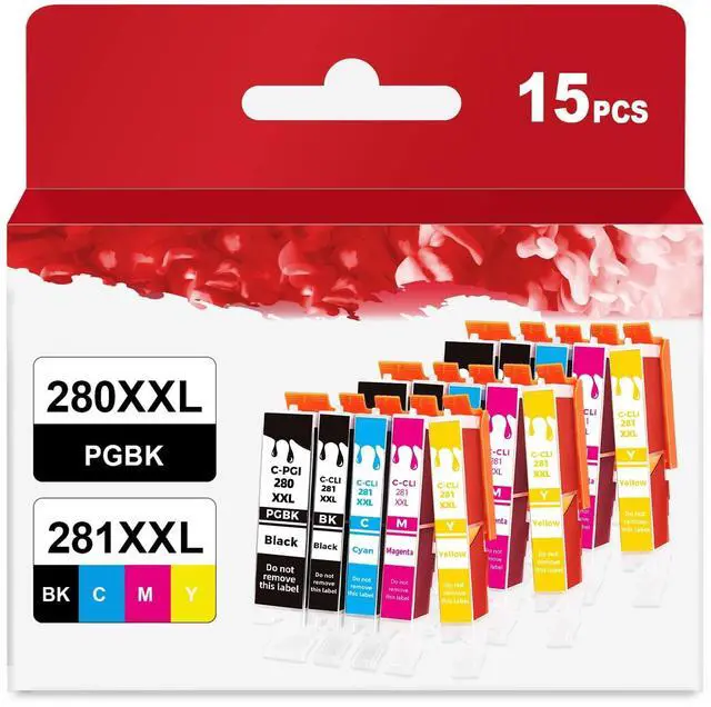 Color ^^ Package Content: 3 New Extra Capacity Cartridge 280 281 pack of 5 ink cartridges: 3 PGBK 280XXL ink cartridge, 3 Small Black 281XXL, 3 Cyan 281XXL, 3 Magenta 281XXL, 3 Yellow 281XXL (NOT Include Photo Blue, Total 15 Packs), and a user guide ^^ The 280XL 281XL ink cartridges Widely Compatible with pixma TR8600 TR8520 TR8620a TR8620 TR7520 TR8622a TR8500 printer. ^^ The 280XL 281XL ink cartridges work with: TR8620a TR8620 TS9520 TS9521C TR8622 TR8520 TR8500 TR7620 TR7520 TR7500 TS6100 TS6120 TS6200 TS6220 TS6300 TS6320 TS702 TS702a TS8100 TS8120 TS8200 TS8220 TS8222 TS8300 TS8320 TS8320 TS8322 TS9100 TS9120 Printers. Please make sure the printer you are using is compatible with ink 280 and 281 cartridges before purchasing.