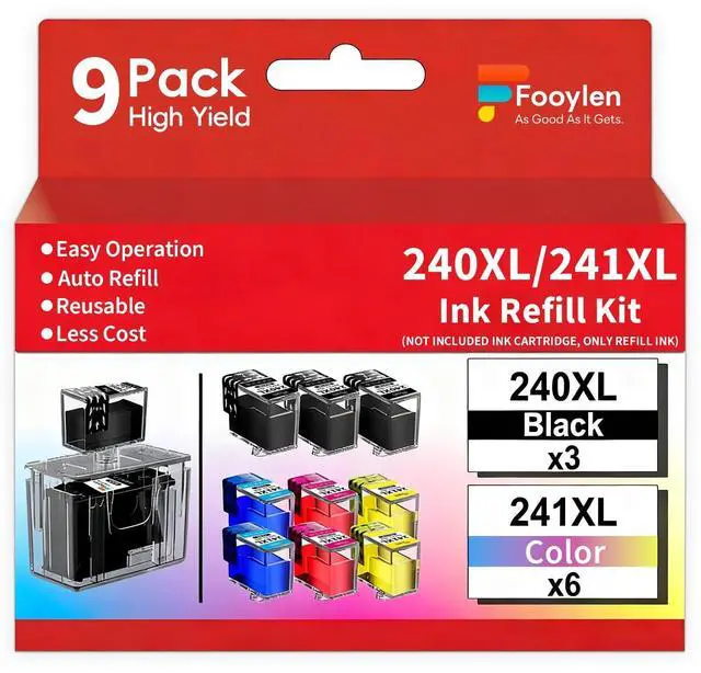 Automatic Ink Filling: Fooylen 240XL 241XL Ink Refill Kit allows you to reuse your 240XL and 241XL ink cartridges (cartridges not included). Original cartridges can be refilled 6-9 times, compatible cartridges can be refilled 3-5 times ^^