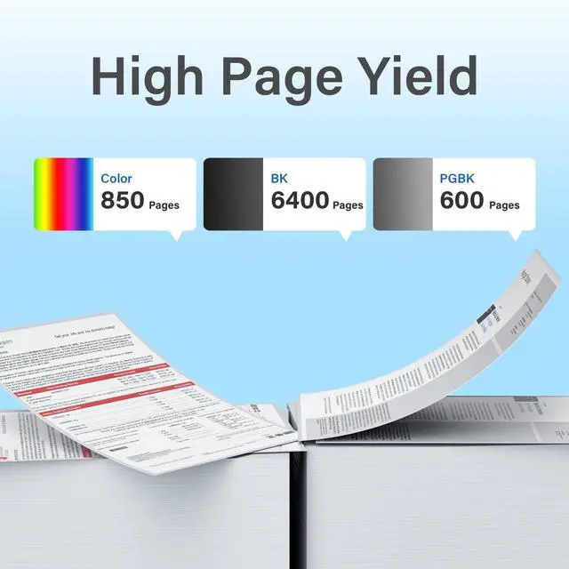 ^^ Page Yield: PGI-280XXL (PGBK) 600 pages. CLI-281 (black) 6400 pages estimated, CLI-281 color (cyan, magenta, yellow) 850 pages estimated.