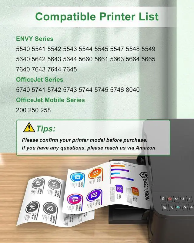 Easy Install Fast Recognition: Our alternative to hp envy 7640 printer ink cartridges with the latest chip technology, ensuring full compatibility and a seamless printing experience. Just simply insert the cartridge and start printing smoothly. Fully compatible with your HP Envy 5540 5541 5542 5543 5544 5545 5547 5548 5549; 5640 5642 5643 5644 5646 printers ^^