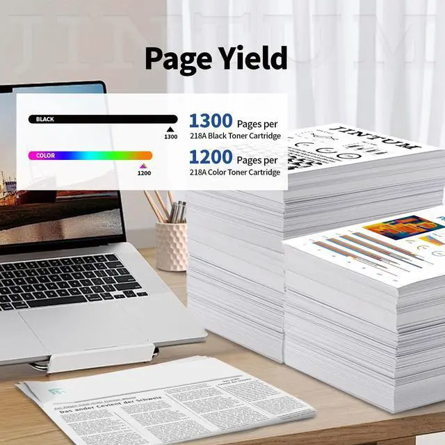 Page Yield: 218a black is 1, 300 pages, Color is 1, 200 pages per 218a toner cartridge at 5% coverage ^^