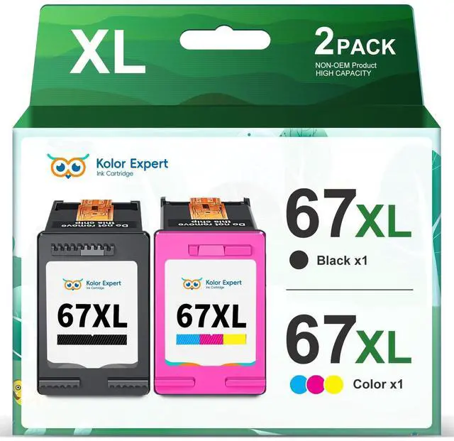 For HP 67 Ink Cartridges Black/Color Combo Pack With Upgrade Chips: Kolor Expert Remanufactured Printer Ink HP 67 67XL 67XXL are Compatible for Latest Upgraded Printer Firmware. ^^ For HP Ink 67