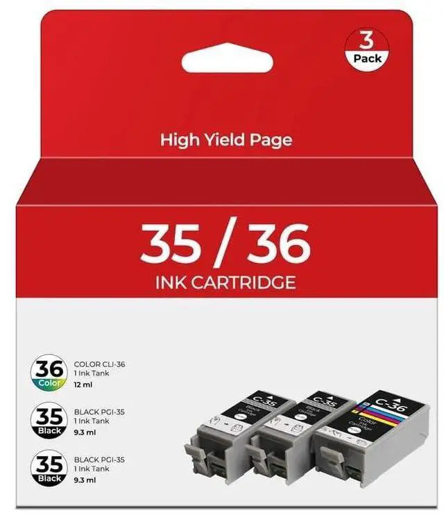 Package Content: PGI-35 CLI-36 ink cartridges compatible for Canon 35 36 ink cartridges, includes 2 Pack Black PGI-35 ink cartridges, 1 Pack Color CLI-36 ink cartridges ^^ PGI35 CLI36 Ink Cartridges