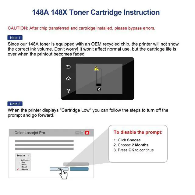 With Chip: 1 Pack Compatible Replacement for HP laserjet 148a toner cartridge comes with a pre-installed chip, No need to switch orginal 148A (W1480A) toner chip ^^