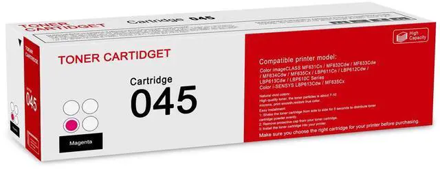 Include: 1 Pack 045 1240C001 M Magenta toner cartridge replacement for Canon 045 CRG-045 toner cartridges.