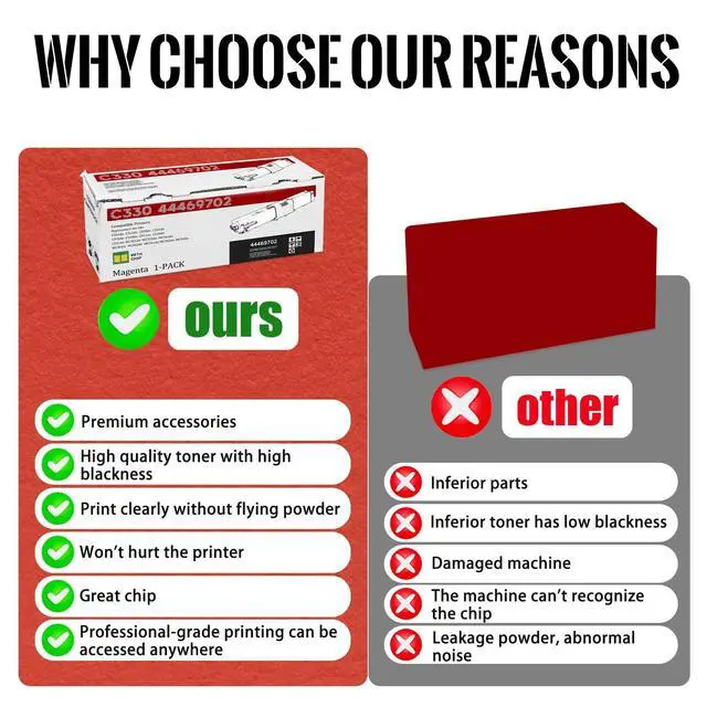 ^^ Compatibility Excellence: Designed to work seamlessly with a wide range of printer models, the C330 44469702 toner cartridge ensures a smooth installation process. Simply insert the cartridge and start printing immediately, saving you time and effort. ^^ Elevate your office productivity with the C330 44469702 ink cartridge, engineered for superior performance and reliability. Designed specifically for high-performance printers, this ink cartridge ensures optimal print quality with every use. Boasting a high yield capacity, it minimizes the frequency of replacements, keeping your workflow uninterrupted. Whether you're printing daily documents or critical reports, the C330 44469702 toner delivers crisp, sharp images that command attention.