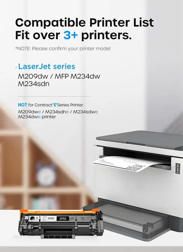 Compatible Printer: 134A W1340A Toner Cartridges (with Chip) Compatible with Laserjet M209dw MFP M234dw M234sdw M234sdn Printer. Please NOTE that Not Compatible with Laserjet 209dwe M234dwe M234sdne M234sdwe printer ^^