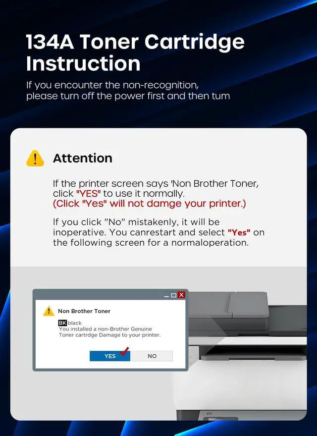 Package Included: 2 x 134A Black Toner Cartridge (with Chip), 1 x User Instruction Card ^^