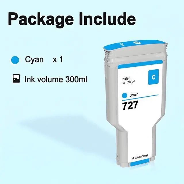 Package Contents: 1 x Cyan 300ml Dye ink HP727 ink cartridge with newest chip ^^