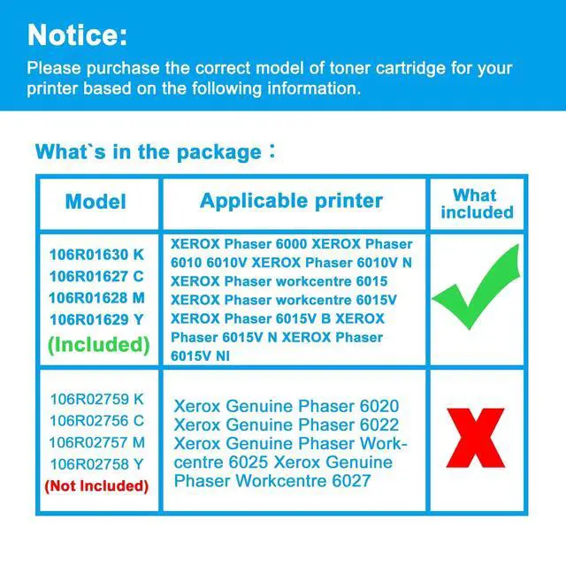 ^^ Compatible Printers: Replacement for Xerox Phaser 6000for Xerox Phaser 6010. for Xerox WorkCentre 6015 ^^