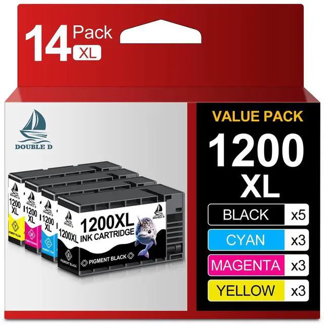 Compatible PrintersCanon Maxify MB2020, MB2023, MB2050, MB2120, MB2320, MB2350, MB2720 Printer. ^^ Package Contents5 x Black PGI-1200XL, 3 x Cyan PGI-1200XL, 3 x Magenta PGI-1200XL, 3 x Yellow PGI-1200XL (Total 14 Pack). ^^ Extra High YieldUp to 1, 250 pages for black PGI-1200XL ink, 1, 100 pages per color PGI-1200XL color ink. ^^ Advantages Multiple Certifications, Premium Print Quality, Cost Effective, Newest Chip, Secure Packed, Show Ink Level. ^^ Your Printing HelperEasy to install and use. Equipped with a smart chip that allows you to monitor the current ink level and order a replacement pack in time.