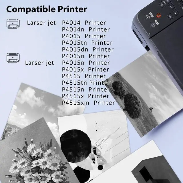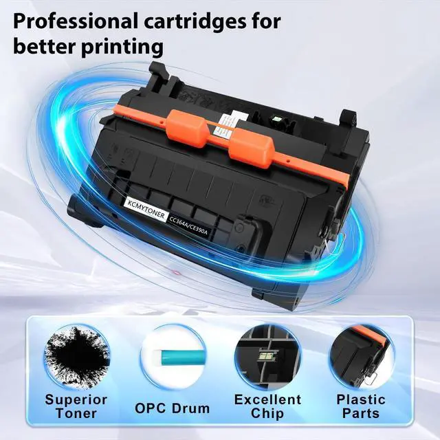 Cartridge Name1PK KCMYTONER Compatible Toner Cartridge Replacement for HP CC364A 64A Toner Cartridge ^^ page capacity Excellent page capacity, Prints up to 10, 000 pages at 5% page coverage each 64A toner cartridge. Durable toner cartridges with colorfast paper ^^ Compatible Printer ModelP4014 P4014n P4015 P4015tn P4015dn P4015n P4015x P4515 P4515tn P4515n P4515x P4515xm Printers. ^^ Advanced TonerThe CC364A toner is delicate and smooth, evenly distributed within the cartridge for precise dispensing every time you print, so that print quality is consistently high ^^ Outstanding performance Prints are sharp and crisp, with brilliant black color.