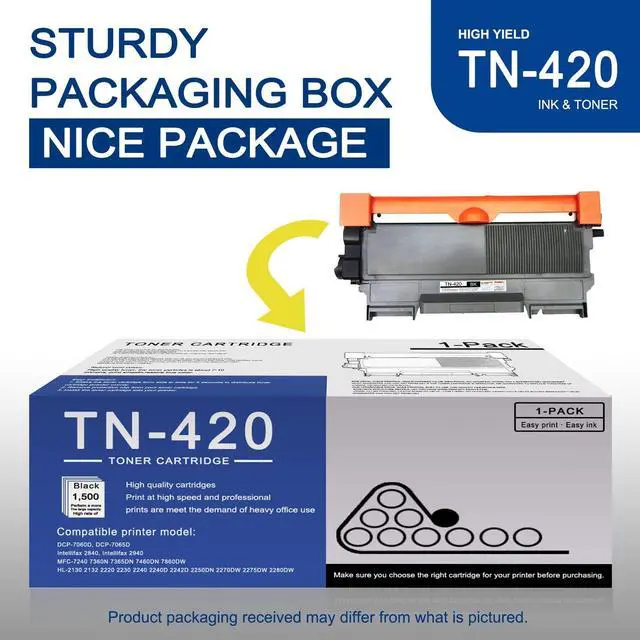 ^^ Page Yield: 1, 500 pages per TN420 Black Toner Cartridge at 5% coverage (Letter/A4). ^^ Compatible for