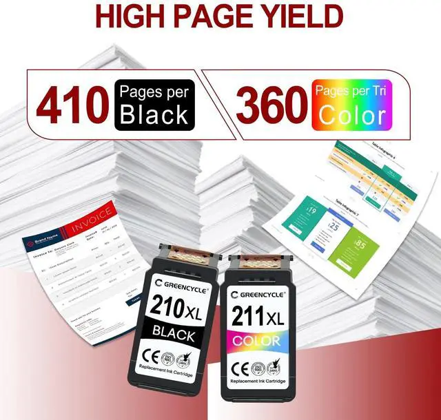 Black Ink Page Yield: Up to 410 page for canon printer ink 210xl black, at 5% coverage by standard A4 paper.