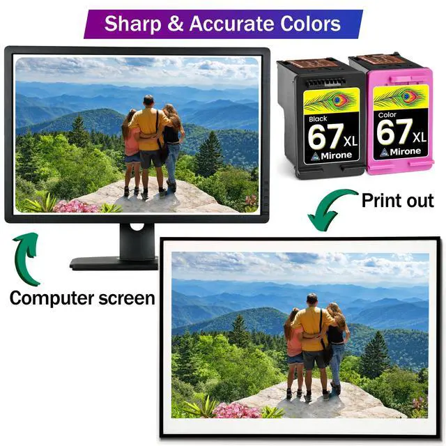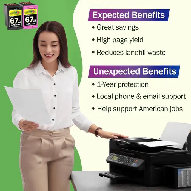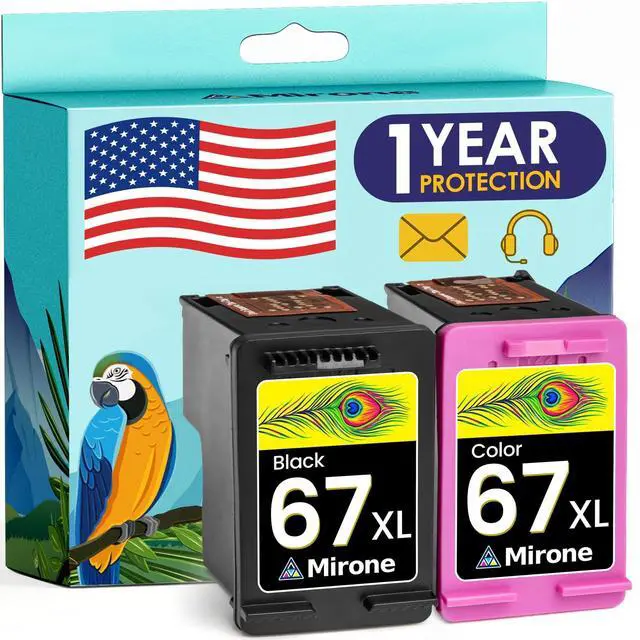 Great quality and service. Our cartridges go through strict quality testing for print reliability, quality, and yield. You also get access to lifetime phone and email support (available on packaging), as well as a 1-year warranty. ^^ Contents. 2 remanufactured for HP Ink 67 cartridges (1 black, 1 color). ^^ Compatible with