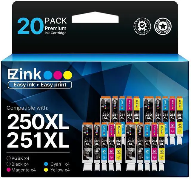 Compatible for: Canon MX722 MX920 MX922 IP7220 IP8720 MG5420 MG5422 IX6820 MG5500 MG5520 MG5522 MG5620 MG5622 MG6320 MG6420 MG6620 MG7120 MG7520 ^^ E-Z Ink PGI-250XL CLI-251XL ink cartridges replacement compatible for Canon ink 250 and 251 xl cartridges ^^ Premium quality ink delivers crisp text and graphics