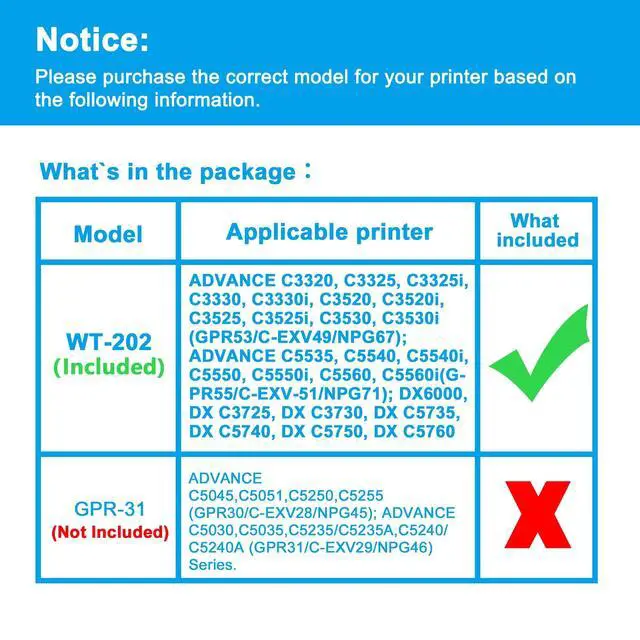 Compatible Printers: Replacement for Canon imageRUNNER ADVANCE C3320 C3325 C3325i C3330 C3330i C3520 C3520i C3525 C3525i C3530 C3530i (GPR53/C-EXV49/NPG67); imageRUNNER ADVANCE C5535 C5540 C5540i C5550 C5550i C5560 C5560i(GPR55/C-EXV-51/NPG71) DX6000 DX C3725 DX C3730 DX C5735 DX C5740 DX C5750 DX C5760 ^^