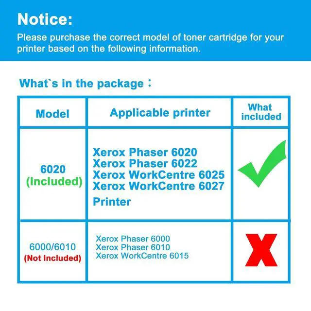 ^^ Compatible Printers: Replacement for Xerox Phaser 6020, for Xerox Phaser 6022, for Xerox WorkCentre 6025, for Xerox WorkCentre 6027 Printer ^^