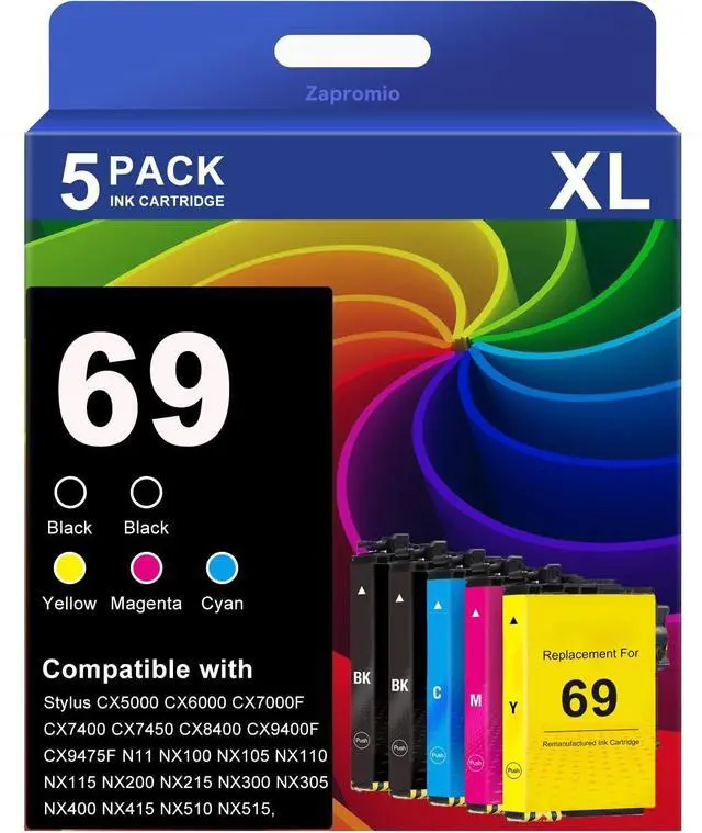 • 5-Pack 69 Remanufactured Ink Cartridges replacement for 69 T69 ink cartridges Deliver exceptional printing performance comparable to OEM cartridges while significantly reducing your printing costsss