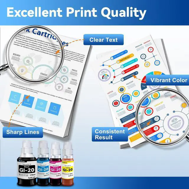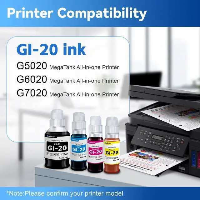 Printer Compatibility: GI-20 GI20 Ink Refill Bottles Kit Compatible for Canon G6020 Printer, G7020 Printer, G5020 MegaTank All-in-one Printers. Whether for home, office, or school use, this high-capacity ink set helps lower your printing costs and ensures smooth, uninterrupted performance ^^ 4