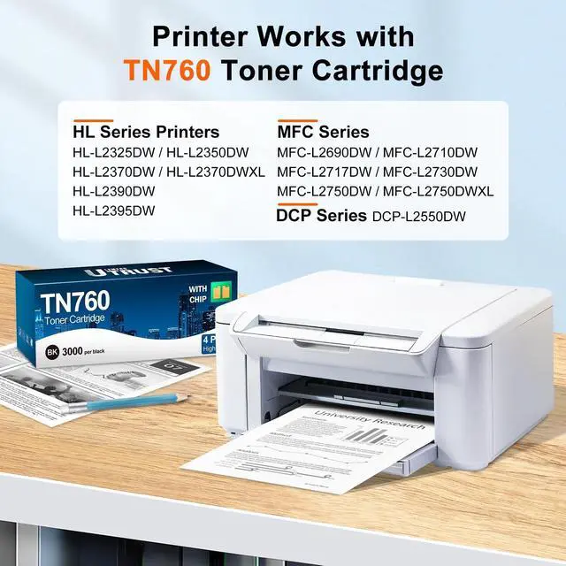 What You Get: 1 x User Guide, 4 x TN760 Black toner cartridges ues with TN760 toner for any printer. Your purchased TN760 toner is covered by after-sales protection throughout. We offer 12-hour response for quality/compatibility issues and reliable tech support ^^ 2