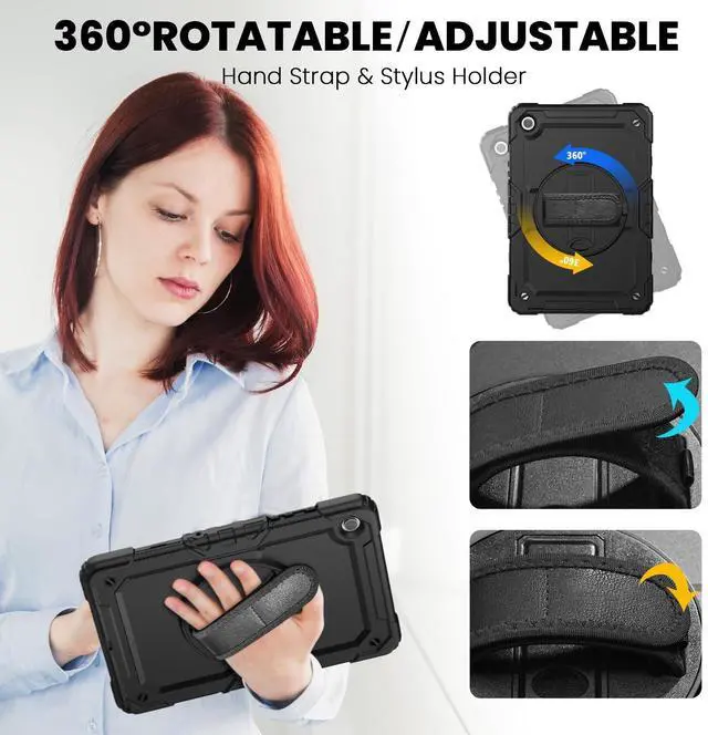 Hand Strap: The case for Galaxy Tab A9 Plus case with 360-degree rotating stand provides position of 3 angles when you watching/ typing you need, makes your hand free. The hand strap helps you hold or use your case for Tab A9+ Plus easily and comfortably.