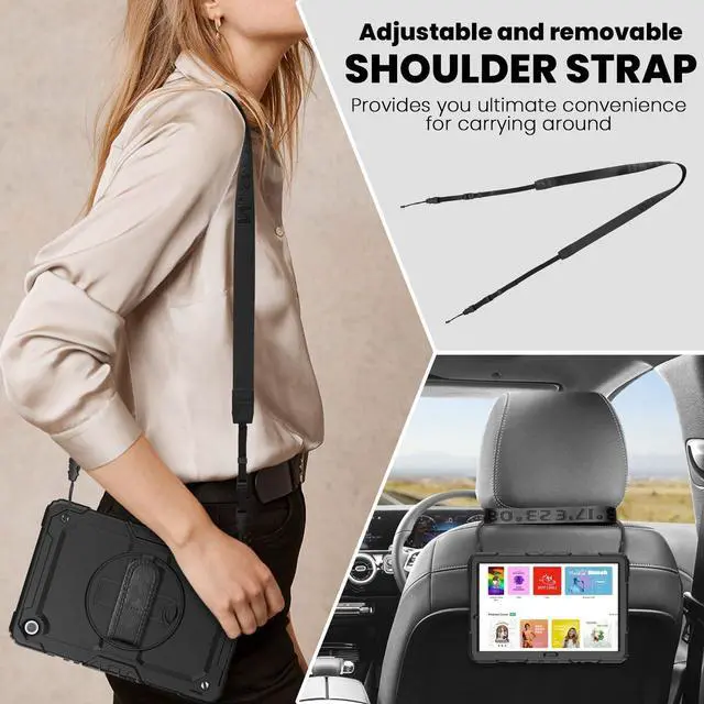 Adjustable Shoulder Strap: The shoulder strap of this case for Galaxy Tab A9+ Plus is detachable and adjustable. Its convenience carry the tablet around during traveling or other activities outside. Also, you can also hang the Tab A9 Plus tablet on the back of seat for fun when traveling in cars for entertainment for kids. ^^ Protection &