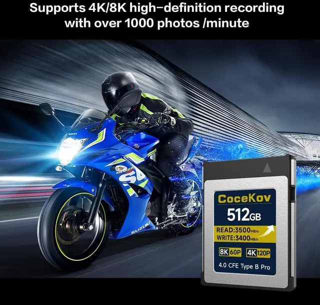 PCIe 4.0 PerformanceUnleash 3500MB/s read + 3400MB/s write speeds to handle 8K/4K workflows, high-res photography & rapid transfers seamlessly. Universal compatibility with CFexpress Type B cameras ensures plug-and-play reliability, while rugged construction resists drops, shocks & extreme temps to keep your data secure. Perfect for sports, wildlife or cinematic shootsnever miss a frame ^^ CFexpress Type B Compatibility Compatibility With Nikon Z9/Z8/Z7II/Z6/Z6III, Canon EOS R5/R5C/R3, Panasonic S1H and other CFexpress Type B devices, this card ensures plug-and-play reliability. Powered by PCIe 4.0 & NVMe tech, it delivers stable 8K performance while supporting legacy systems.