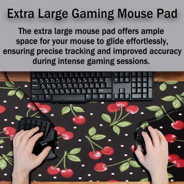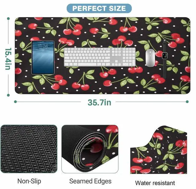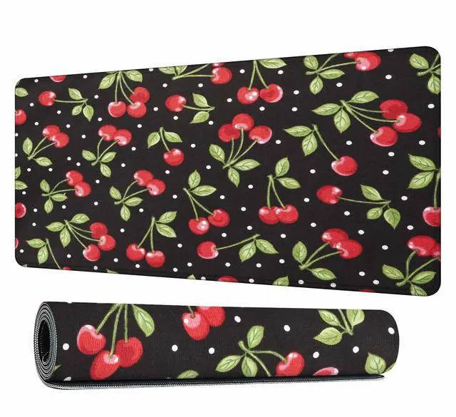 Y YIHANGBEST Red Cherry Mouse Pad Fresh Cherries with Green Leaves XL Gaming Mouse Keyboart Mat for Desk,Computer,Office,Home 35.4"X15.7"