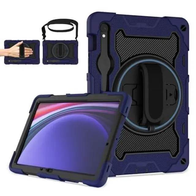 Inch (Model: SM-X520/ X526B/ X528U; SM-X510/ X516B/ X518U; SM-X710/ X716B/ X718U) ^^ [Unique Kickstand Function] only one type of Samsung Case full body rugged protective durable rubber case supports auto kickstand retraction in the market, you only need to lift the kickstand up gently and then free your hand, done to open/close the kickstand, that allows you and your kids use it much convenience. There is a Stylus Pen Holder on the back to store your pen (Pencil is NOT included) ^^ [3-layer Super Thick Full Body Strong Protection] Upgrade super thick super soft rubber + rugged PC and front screen protector frame combination. Not only increase ten times shockproof impact resistance, but also increase extra dissipate heat by upgrade built in soft endothermic sponge ^^ [360 Rotating Kickstand / Hand Strap] Multiple angles kickstand and hand strap suit for all kinds of group, such as toddler / children / kids, make money people at office/restaurant / school / warehouse / outside, students at elementary school /middle school/ high school /university, senior people at home, and another people ^^ [Built-in Screen Protector+Detachable Shoulder Strap] Raised edges on the screen protection + have built in screen protector protection, truly made work to protect screen of Galaxy Tab from scratching and breaking.