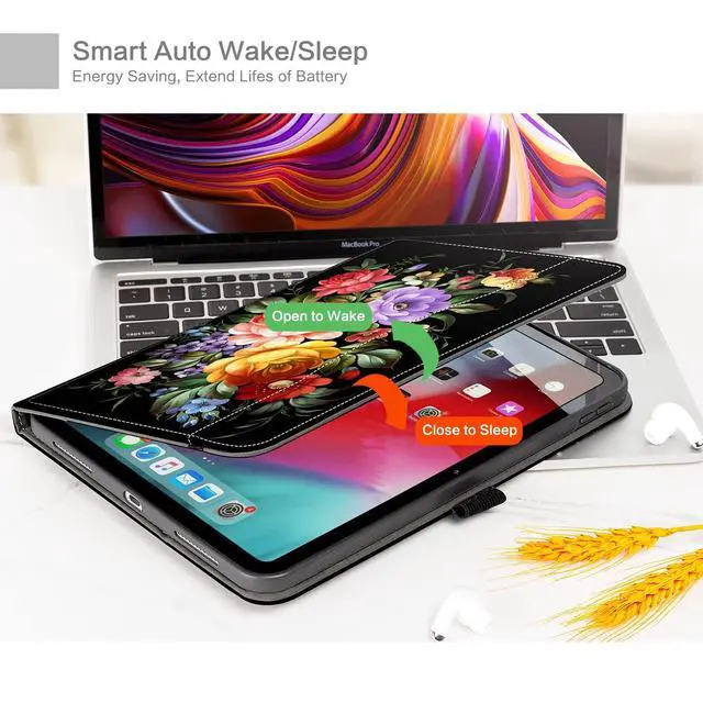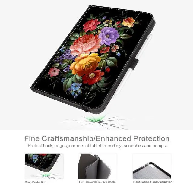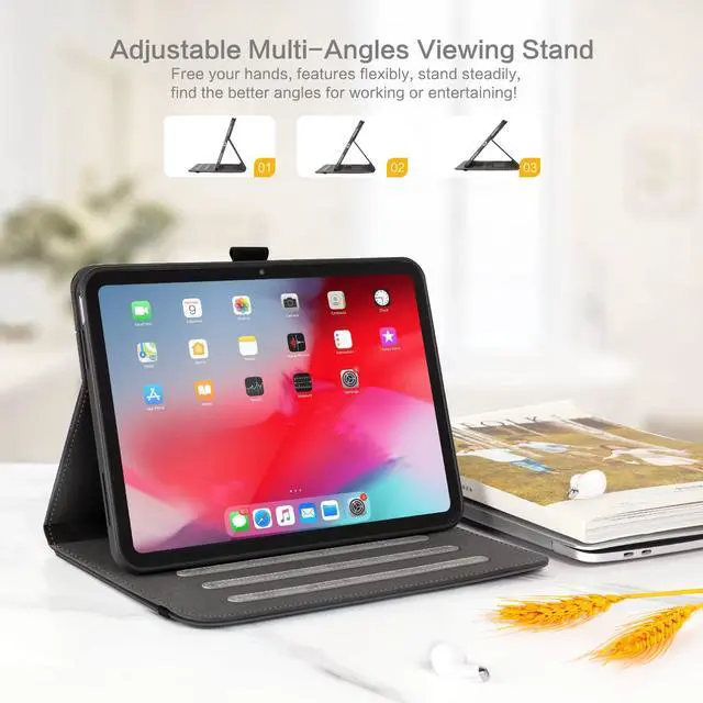 Number: A2696 / A2757 / A2777 / A3162). Premium MaterialMade of reinforced external PU leather dual layer construction and soft internal microfiber lining to give you 360 full protectionSmart Auto Sleep/WakeMagnetic iPad 10th Gen Cover instantly wakes up iPad when opened, and makes it go to sleep once closed (extend battery life). Upgraded Anti-slip StripesWith three anti-slip stripes, you can adjust it to multiple stable angles, holding up great for viewing, video watching and reading at home, or presenting at your meeting. Hand StrapBuilt-in hand strap, coupled with an elastic band to keep the case OPEN, give you a comfortable single-hand use experience. External Elastic BandWhen you don't use it, strap help you more firmer to fix your ipad. Do not have to worry about loss and loose. Front Document PocketDocument Pocket is designed for you to store your business cards, Cash, bank cards, notes or bills while going outside. Pencil HolderStylus Loop is more convenient save your Apple Pencil.