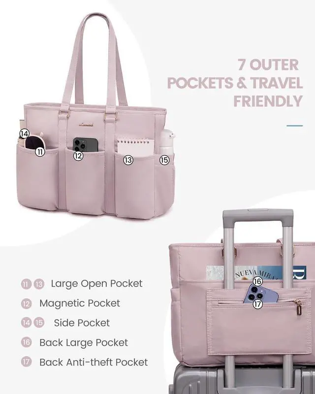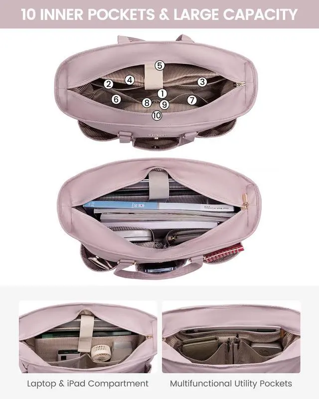Versatile Use: Our work tote bag for women boasts 10 interior pockets, making it perfect for organizing your work essentials. Whether you're a nurse, teacher, or professional, this tote bag ensures everything has its place.